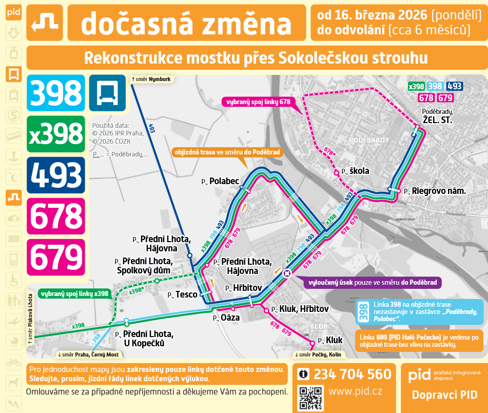 Z důvodu uzavírky ul. Rooseveltova pojede linka 765 odklonem mimo zastávku Říčany, U Lípy. Linka náhradou obslouží zastávku Říčany, Podhradí.